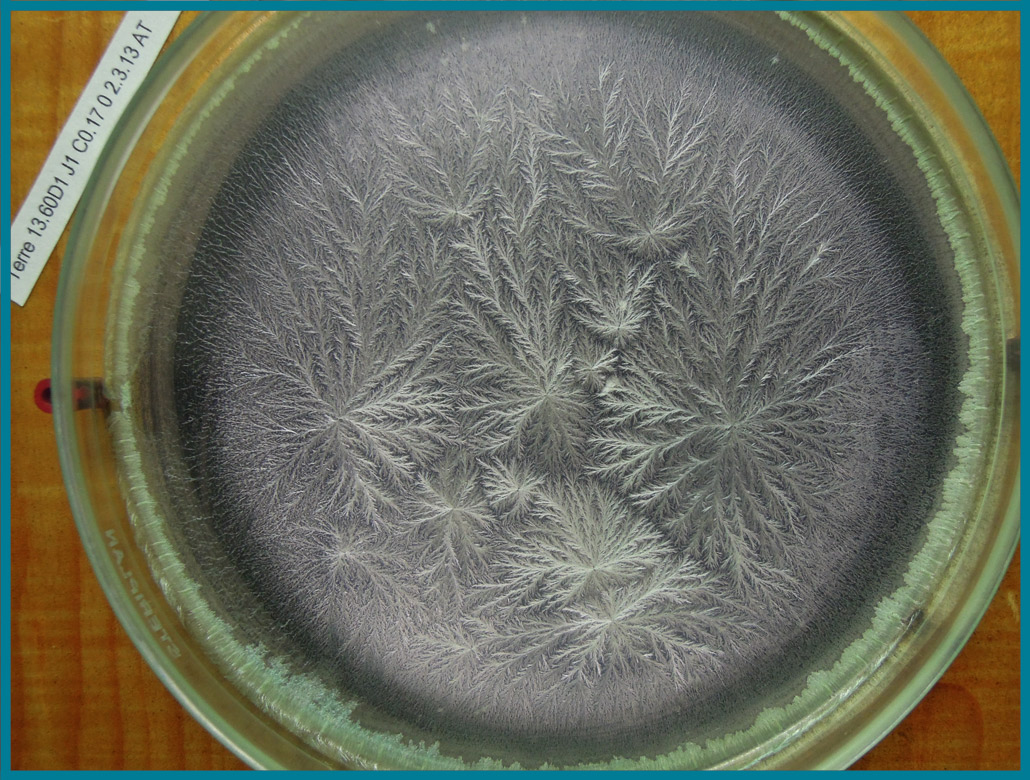 Images principales : concentration à respectivement 0,66 g et 0,73 g en J1 (photos n° 1, n°2) complétées par des images à faible concentration 0,33 g et 0,17 g en J1; avec des concentrations faibles à très faibles de chlorure de cuivre (photo n° 3)